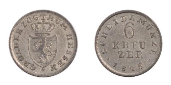 | Coin, German States, HESSE-DARMSTADT, Ludwig X, 6 Kreuzer, 1826, |