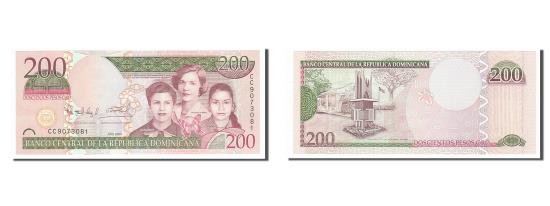 | | Banknote, Dominican Republic, 200 Pesos Oro, 2009, UNC(65-70) | | | Three women at right., Monument at left center., Violet on multicolor underprint. | | FEATURES |