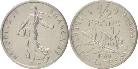| | Coin, France, 1/2 Franc, 1980, , Nickel, KM:P665, Gadoury:91.P1 | | | FEATURES |