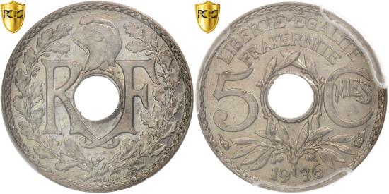 | Coin, France, Lindauer, 5 Centimes, 1936, Paris, PCGS, MS64, |