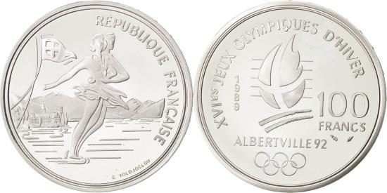 | | Coin, France, 100 Francs, 1989, , Silver, KM:972 | | | Ice Skating Couple, Cross on flame, date and denomination, logo below | | FEATURES |