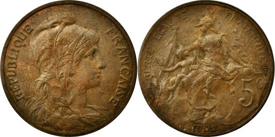 | | Coin, France, Dupuis, 5 Centimes, 1902, , Bronze, Gadoury:165 | | | Dupuis, Liberty head right, Republic protecting her child, denomination at right, date below | | FEATURES |