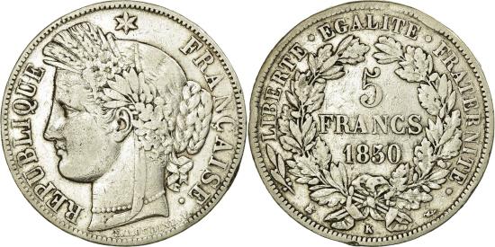 | | Coin, France, Cérès, 5 Francs, 1850, Bordeaux, , Silver, Gadoury:719 | | | Cérès, Liberty head left, Denomination within wreath | | FEATURES |