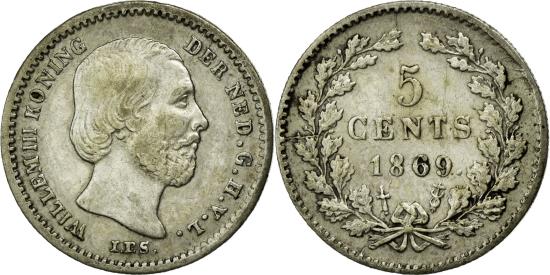 | | Coin, Netherlands, William III, 5 Cents, 1869, , Silver, KM:91 | | | Head right, Value and date within wreath | | FEATURES |