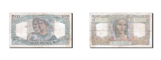| | Banknote, France, 1000 Francs, 1 000 F 1945-1950 ''Minerve et Hercule'', 1945 | | | Signature J. Belin, P. Rousseau and R. Favre-Gilly. 12.4.1945-9.1.1947., Minerva and Hercules at center., Woman at center., Blue and multicolor. | | FEATURES |