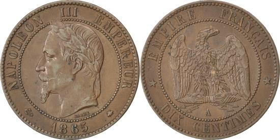 | | Coin, France, Napoleon III, Napoléon III, 10 Centimes, 1865, Paris, | | | Napoléon III, Laureate head left, Eagle, NAPOLEON III EMPEREUR | | FEATURES |