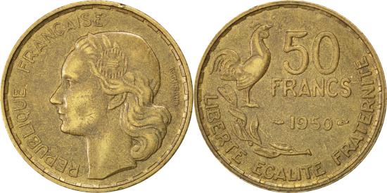 | | Coin, France, Guiraud, 50 Francs, 1950, , Aluminum-Bronze, KM:918.1 | | | Guiraud, Head left, Denomination above date at right, rooster above laurel branch at left | | FEATURES |