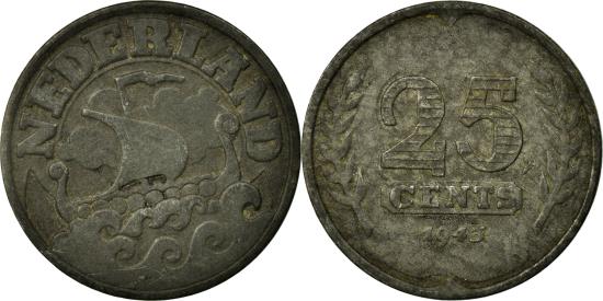| | Coin, Netherlands, Wilhelmina I, 25 Cents, 1943, , Zinc, KM:174 | | | Sailing boat, Value flanked by sprigs | | FEATURES |