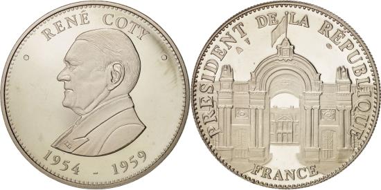 | | France, Medal, Les Présidents de la République, René Coty, History, | | | Bust left, Élysée Palace, * RENÉ COTY * 1954-1959, PRESIDENT DE LA RÉPUBLIQUE / FRANCE | | FEATURES |