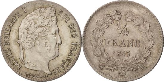 | | Coin, France, Louis-Philippe, 1/4 Franc, 1843, Rouen, , Silver | | | Louis-Philippe, Laureate head right, Denomination within wreath | | FEATURES |