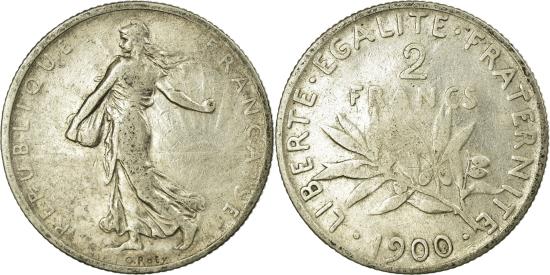 | | Coin, France, Semeuse, 2 Francs, 1900, Paris, , Silver, KM:845.1 | | | Semeuse, Figure sowing seed, Leafy branch divides denomination and date | | FEATURES |