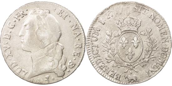| | Coin, France, Louis XV, Écu de Béarn au bandeau, Ecu, 1767, Pau, | | | Écu de Béarn au bandeau, Head left, Crowned round arms of France within branches, Mint mark: Cow. Issued for Province of Bearn. Dav. #A1331., ....RE.BD (ligate BD). | | FEATURES |