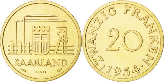 | | Coin, SAARLAND, 20 Franken, 1954, Paris, , Aluminum-Bronze, KM:E3 | | | FEATURES |