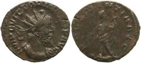 Obverse:� IMP C VICTORINVS P F AVG, Radiate and cuirassed bust of Victorinus, right.
