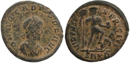 Obverse: DN ARCADIVS P F AVG, draped, cuirassed and diademed bust right