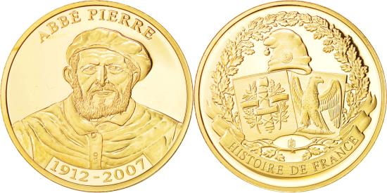 | | France, Medal, History, 2007, , Brass | | | Bust front, Coats of arms in a wreath, ABBÉ PIERRE / 1912-2007, HISTOIRE DE FRANCE | | FEATURES |