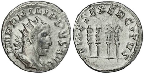 Ancient Roman coin of Philip I 'the Arab' silver antoninianus - FIDES EXERCITVS