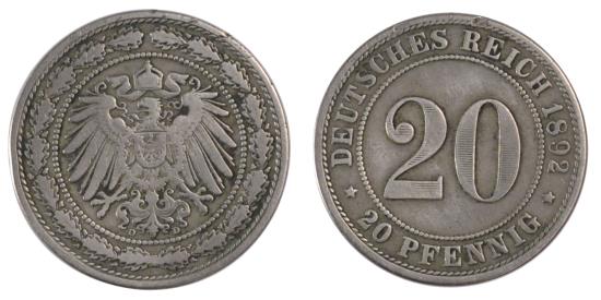 | | Coin, GERMANY - EMPIRE, 20 Pfennig, 1892, Munich, , Copper-nickel | | | FEATURES |