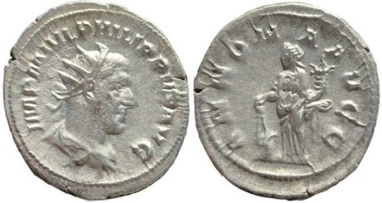 Obverse:� IMP M IVL PHILIPPVS AVG, radiate, draped and cuirassed bust right