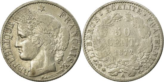 | | Coin, France, Cérès, 50 Centimes, 1872, Paris, , Silver, KM:834.1 | | | Cérès, Laureate head left, Denomination within wreath | | FEATURES |