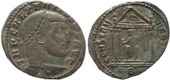 Obverse: IMP C MAXENTIVS P F AVG, laureate bust of Maxentius right.