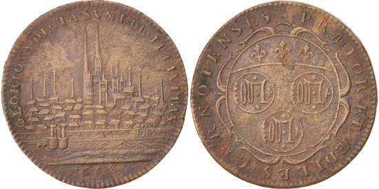 | | France, Token, Ville de Chartres, 1689, , Copper, Feuardent:8240 | | | Chartres coat of arms, Town | | FEATURES |