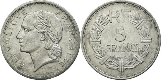| | Coin, France, Lavrillier, 5 Francs, 1948, Beaumont - Le Roger, | | | Lavrillier, Laureate head left, Denomination above date within sectioned wreath | | FEATURES |