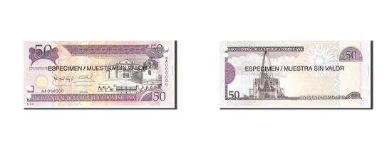 | | Banknote, Dominican Republic, 50 Pesos Oro, 2006, Undated, KM:176s1, UNC(65-70) | | | 2006. Specimen. Overprint: ESPECIMEN / MUESTRA SIN VALOR in black on both sides. Punch hole cancelled. | | FEATURES |