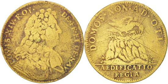 | | France, Token, Royal, Bâtiments du Roi, Louis XIV, , Copper | | | LOVIS. XIV. ROY. DE. FR. ET. DE. NAV. ., DOMOS. NON. AD. OTIA// AEDIFICATIO. REGIA . | | FEATURES |