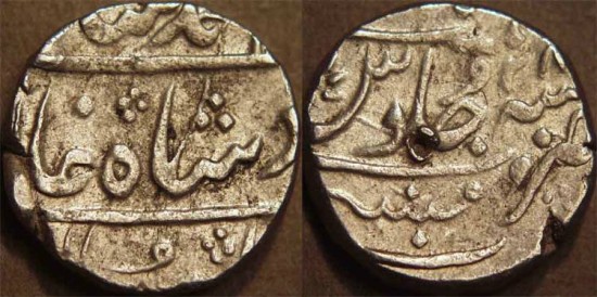 Legend, naming Muhammad Shah, AH date 1158 off flan |
