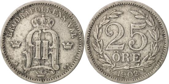| | Coin, Sweden, Oscar II, 25 Öre, 1902, , Silver, KM:739 | | | Large lettering, Value within wreath, date below | | FEATURES |