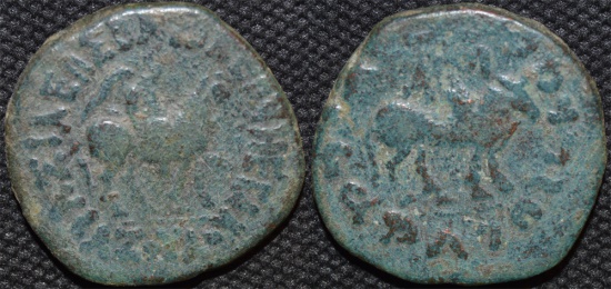 INDIA, INDO-SCYTHIAN: Azes I AE dekachalkon: Mounted king/Bull. VERY RARE!
