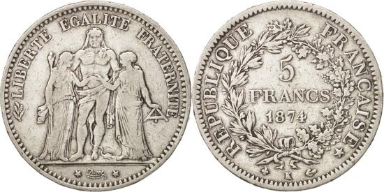 | | Coin, France, Hercule, 5 Francs, 1874, Bordeaux, , Silver, KM:820.2 | | | Hercule, Hercules group, Denomination within wreath | | FEATURES |