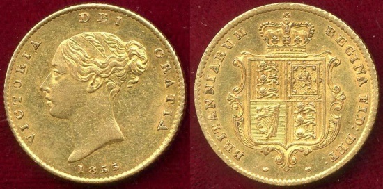 GREAT BRITAIN 1855 GOLD 1/2 SOVEREIGN AU