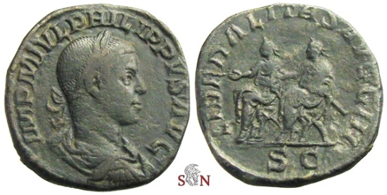 Philippus II Sestertius, struck AD 246-249 at Rome mint.