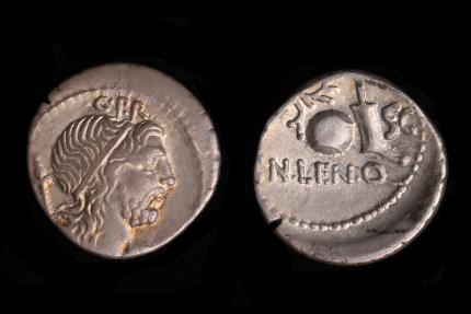 Cn. Lentulus Ar. denarius (76 - 75 BC), GPR above the diad. Bust of Genius of the Roman People dr. r., sceptre on shoulder, rev., EX SC divided by terrestrial globe between rudder and sceptre CN LEN Q below (Seaby, Cornelia 54)