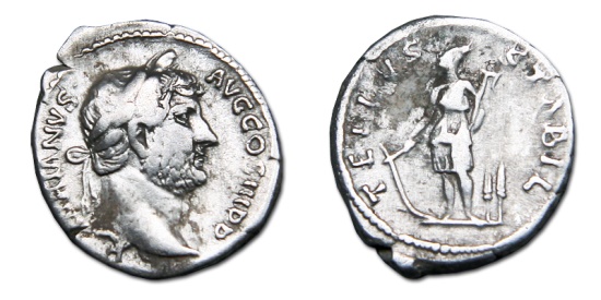 Hadrian AR Denarius. 134-138 AD. (19 mm, 3.2 g).