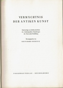 | Vermachtnis Der Antiken Kunst, Reinhard Herbig, Copyright 1950, Hard cover-cloth, No Dust jacket, Condition-very good, German Language |