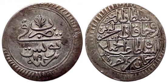 OTTOMAN TUNISIA AR 8 KHARUB of ABDULHAMID I AH 1192 TUNUS 6.9 GR & 27,88 MM