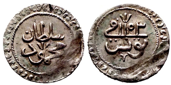 OTTOMAN TUNISIA AR 2 KHARUB of MAHMUD I AH 1153 TUNUS 2.4 GR & 19,73 MM