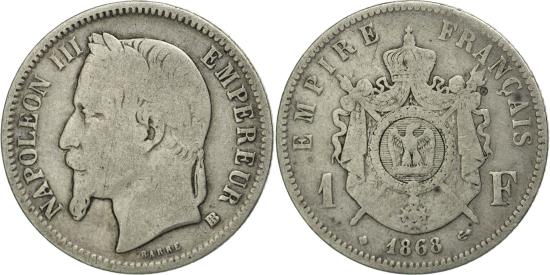 | | Coin, France, Napoleon III, Napoléon III, Franc, 1868, Strasbourg, | | | Napoléon III, Laureate head left, Crowned and mantled arms divide denomination | | FEATURES |