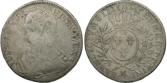 | | Coin, France, Louis XV, 1/2 Écu aux branches d'olivier, 1/2 ECU, 44 Sols, 1726 | | | 1/2 Écu aux branches d'olivier, Young bust left, Crowned oval arms of France within wreath | | FEATURES |