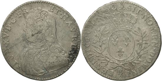 | | Coin, France, Louis XV, 1/2 Écu aux branches d'olivier, 1/2 ECU, 44 Sols, 1730 | | | 1/2 Écu aux branches d'olivier, Young bust left, Crowned oval arms of France within wreath | | FEATURES |