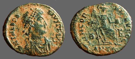 Theodosius I AE3 Constantinopolis seated. Antioch.