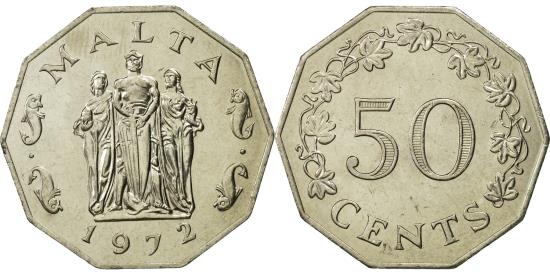| | Coin, Malta, 50 Cents, 1972, British Royal Mint, , Copper-nickel, KM:12 | | | Great Siege Monument, Value within 3/4 wreath | | FEATURES |