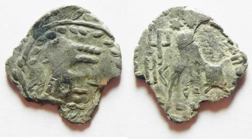 South Arabia. Saba’. AR half unit (17mm, 1.77g). Struck 1st century BC-1st century AD. Imitating Athens 'New Style' coinage. Laureate male head r., hair in ringlets; all within wreath. / Owl standing r., head facing, on amphora; monogram to l. and r. Munro-Hay 1.13ii4.