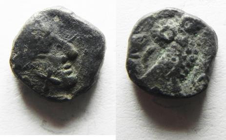 – Quarter Unit (10mm, 1.24 g). Imitating Athens. Helmeted head of Athena right, X (
