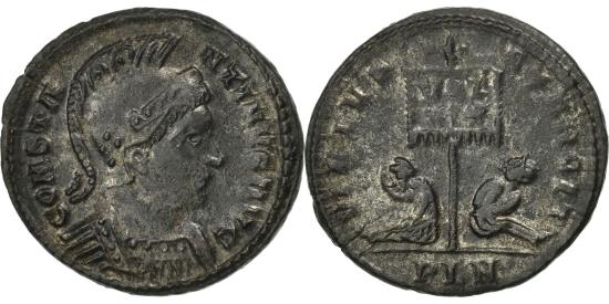 | | Coin, Constantine I, Follis, London, , Bronze, RIC:191 | | | Constantine I, Follis, London, 320-321 AD, , Bronze, RIC:191, helmeted, cuirassed bust right, banner inscribed VOT XX standing between two captives, CONSTA-NTINVS AVG, VIRTVS EXERCIT | | FEATURES |