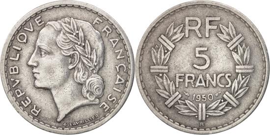 | | Coin, France, Lavrillier, 5 Francs, 1950, Beaumont le Roger, | | | Lavrillier, Laureate head left, Denomination above date within sectioned wreath | | FEATURES |