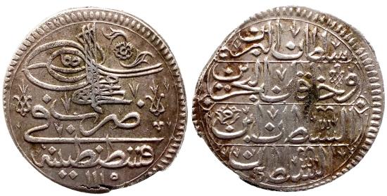 OTTOMAN AR 40 PARA of AHMED III AH 1115 KONSTANTINIYE 25.4 GR & 36,41 MM